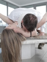 Alexei normally spends the hours before work alone and easing himself into the day, but this morning his girlfriend Stella Cox had other plans. She walked into the kitchen with little more than a dress shirt covering her body and reached up to the to