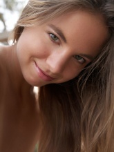 Antea's tan lines highlight her small but delightfully puffy breasts, shaved pussy, and firm ass.