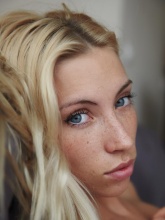 Cute freckles, playfully blonde tousled hair, soft skin and a lickable pussy..Adele poses gracefully on a big comfy bed.