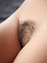 Jasna showcases her delectable and fresh unshaven labia and beautiful perky breasts with a warm, engaging smile on the bed.