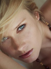 Sprawled comfortably on top of the bed, savoring the subdued morning light, a sultry and sensual Deni looks straight towards the camera with a teasing and inviting look on her alluring face.