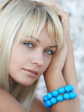 Horny blonde loves nothing more than posing naked on the beach. She will make you love her with her blue eyes and she'll make you insanely horny with her stunning body. To top it all off, she's got a trimmed, delicious-looking little pussy!