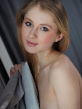 Beautiful blue-eyed model wants to share some sexy pics with you. That's why she couldn't wait to strip down and reveal her irresistible tits. She's also got a stunning ass and a shaved little pussy, which you'll want to fuck deep and hard.