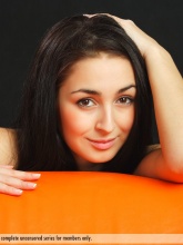 Stunning brunette has an irresistible body and wants to show it off. She stripped down like a goddess, revealing a clean shaved pussy that'll make you drool. Then she had some fun on the couch and played with her necklace, teasing you along the way.