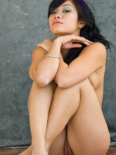 Nude Asian chick gets extremely horny while she's posing in front of the camera. She displayed a perfectly shaped body and then sat down with her legs spread widely, so you can take a better look at her bald cunt. You'll enjoy her from every angle!