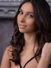 The intricate weave on Magali A's body net lingerie hugs her slender body perfectly