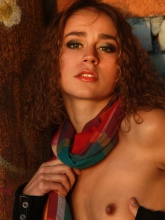Tigra spreads her legs wide open, posing seductively and showcasing her delightfully perky nipples and delectable trimmed pussy.