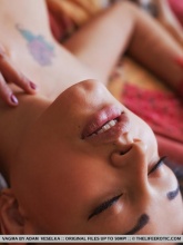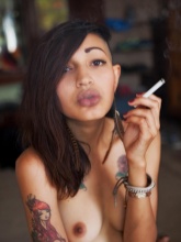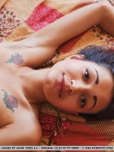 Vagma evokes a sultry and daring muse as she bares her slender physique with tattoos and poses erotically in front of the camera.
